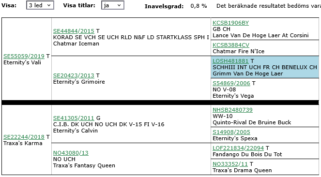 | Aslan | H | HD: A/A, ED: 0/0 | Testiklar OK. Genomfört MH. Utst. excellent. |